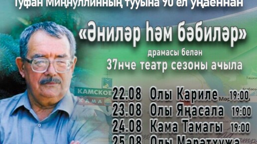 Ежегодно артисты театра, носящего имя писателя, в августе проводят гастроли, посвященные Дню рождения нашего знаменитого земляка, который за сорокалетнюю творческую деятельность написал около сорока пьес, более десятка пьес-сказок для детей, несколько повестей, множество рассказов-былей о современной жизни и общественно-публицистические статьи. На этот раз Нижнекамский драматический театр свой 37-й сезон посвящает 90-летию Туфана...
