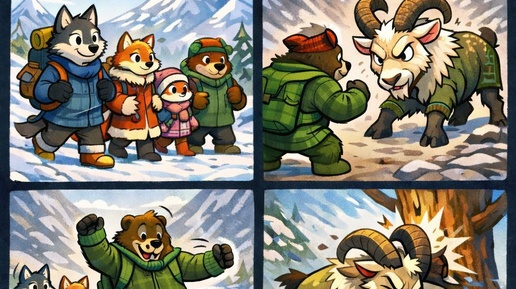 Волк жил недалеко от гор. Эти горы были высокие и холодные — настоящие северные.