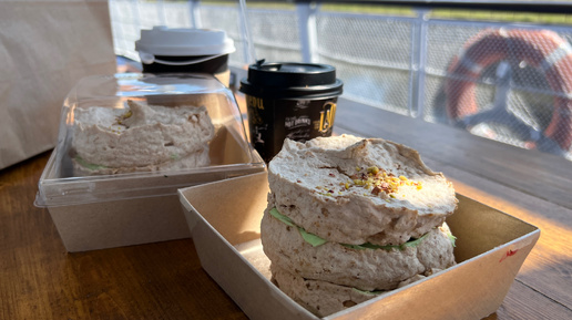 Даже в будний день и рабочие часы на четверть заполненный посетителями.  #едимсМарго  «Анны Павловой» в меню не оказалось, но меренговый ореховый рулет был. Заказ сделан to go с экспериментом – свекольным латте.  ⚖️Вес десерта 150 г, но полностью его не осилила. Пришлось делиться:) Реально показался невероятно большим. К сожалению, в упаковке «на вынос» малиновый соус не добавили, хотя целлофанированная...
