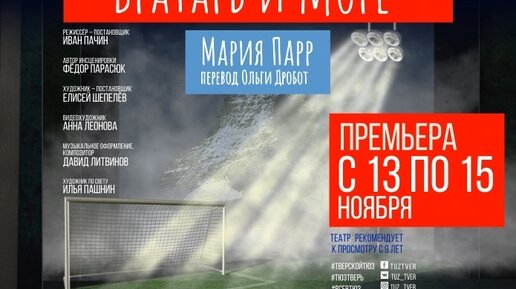 В Тверском театре юного зрителя состоится премьера спектакля «Вратарь и море». Постановка приурочена к началу 88-го театрального сезона. Премьера состоится 13, 14 и 15 ноября. В первый день спектакль начнется в 11:00, а в последующие два дня – в 12:00...