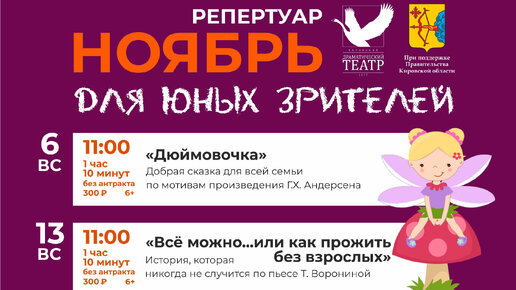 Ноябрьские спектакли ДЛЯ ЮНЫХ ЗРИТЕЛЕЙ в Кировском драмтеатре!