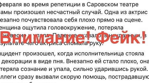 Конечно же, она обросла слухами и недостоверными фактами. Ситуацию комментирует наш театр: "Дорогие зрители! Слухами и домыслами продолжает наполняться интернет о ситуации с артисткой театра, произошедшей на спектакле «Золотой петушок» 7 февраля. Никаких переломов нет и не было! Артистка была осмотрена специалистами клинической больницы №50 и отпущена домой...