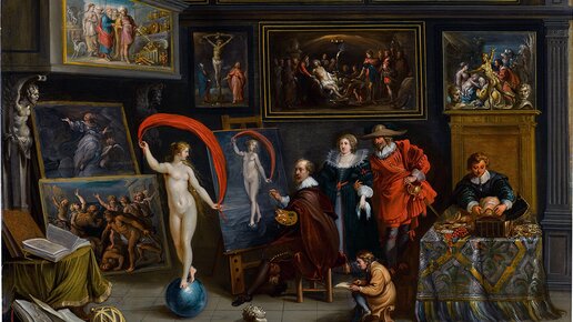 Традиция изображать художников в своих мастерских была широко распространена во Фландрии в первой четверти XVII века. К этой категории относится и картина, условно названная "Художник в своей мастерской". Сразу хочу отметить, что доподлинно имя художника неизвестно. Ранее считалось, что полотно принадлежит кисти фламандского художника эпохи барокко Франса Франкена Младшего. Но более тщательные исследования показали, что это не так. Так что точно художник, создавший эту картину, не идентифицирован...