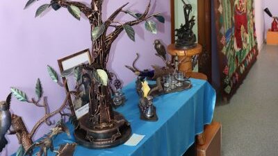 В прошлый раз в Балахтинском районном музее я остановился как вкопанный перед уникальными картинами местной художницы Надежды Путиловой. На этот раз меня поразили работы из металла местного мастера-самородка Станислава Шевцова, чья выставка была здесь развернута. Воздух, что ли, в Балахте какой-то особенный, что здесь живет столько талантливых людей? От скульптур или статуэток Станислава (даже не знаю, как это правильно назвать) глаз не оторвать, рассматривая, как и из чего все это сделано. Хотя понятно из чего: из железного хлама, буквально из металлолома...