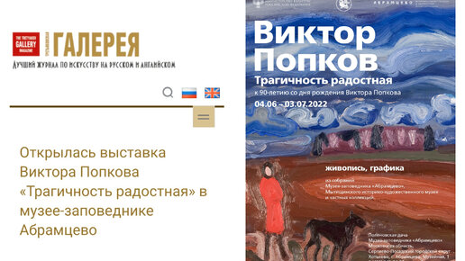 Статья об открытии выставки Виктора Попкова в журнале "Третьяковская галерея"