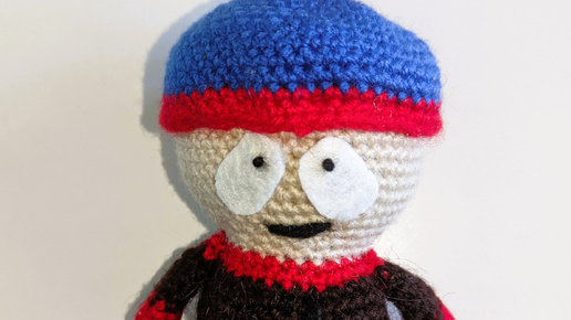 Анэт на связи! Есть очень популярный мультсериал Южный Парк или South Park. Я связала одного из персонажей данного мультика Стэна Марша. Пряжу использовала разную по составу, но в основном акриловую. Цвета взяла: бежевый или приближенный к цвету кожи, коричневый (применила то, что было дома, из-за шерсти в составе пряжа «волосатая»), красный, синий и чёрный. Чтобы обозначить начало ряда беру всегда обычную канцелярскую скрепку. Крючок 1,9 Сокращения: ка = кольцо амигуруми сбн = столбик без накида...