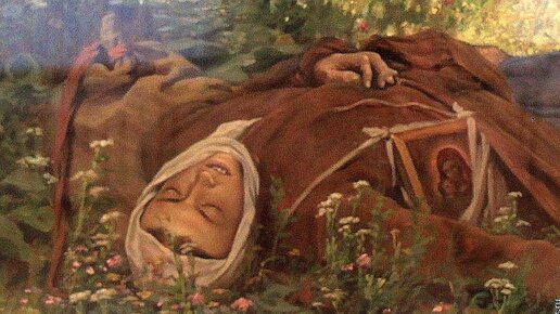 У Василия Григорьевича Перова немало картин с драматическим и даже трагическим сюжетом. Но на меня самое сильное впечатление произвела картина "Странница в поле" (1879), которую я увидела в замечательном Художественном музее в Нижнем Новгороде. На полотне изображена молодая девушка-крестьянка, вынужденная странствовать, чтобы как-то прокормиться, выжить. От голода или болезни девушка умерла. Худая босая с иконой на поясе она лежит под деревом на краю бурно цветущего, благоухающего луга. Сначала даже не понимаешь — что происходит...