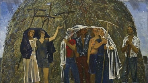 Действительно, ощущение тишины, размеренности и несуетности этого мира и природы, даже если речь идет о сельхозработах, – первое, что проявляется от созерцания (именно созерцания) работ художника-монументалиста и живописца из Санкт-Петербурга Василия Владимировича Сухова (1949-2023). Ну и почти сразу по ассоциативному ряду вспомнился диалог из культового фильма «Белое солнце пустыни»: