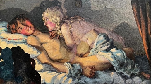 Картина Константина Сомова «Суккуб» — один из тех редких случаев, когда художник обращается к теме сна не как к декоративному мотиву, а как к самостоятельной реальности, обладающей собственными законами. Сон здесь не граница между явью и фантазией, а особая зона, в которой чувства обретают материальность, а желания — форму, способную коснуться кожи. Перед зрителем — юноша, погружённый в тяжёлый, глубокий сон. Тело его расслаблено, руки раскинуты, что невольно делает его похожим на героя классической сцены, только лишённого всякой героической воли...