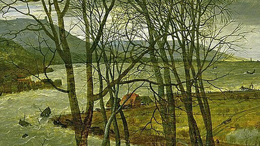 1565 год... Фламандский художник Питер Бейгель пишет 6 (вроде бы) картин из цикла "Времена года". Строго говоря, картину называют по разному: "Пасмурный день", "Хмурый день", "Хмурое утро", "Хмурый день. Весна". И вот тут возникают первые две загадки — а на картине изображено какое время суток? Утро, день, вечер? Непонятно! Хотя... Мягкий золотистый свет на переднем плане, некоторые персонажи, основательно упраздновавшиеся... Ставлю на начало вечера. А время года какое? Сейчас принято говорить, что "Сумрачный день" это ранняя весна...
