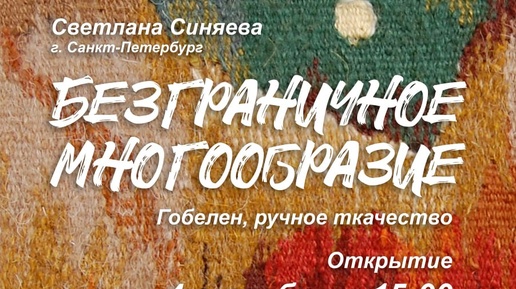 Открытие персональной выставки Светланы Синяевой «Безграничное многообразие» 🖼 🎨 Светлана Синяева — мастер гобелена, член Союза художников России и Гильдии текстильщиков Санкт-Петербурга. В своих работах она сочетает традиции и современность, показывая актуальность гобелена. В экспозиции представлены работы разных лет, демонстрирующие мастерство и трудолюбие художника...