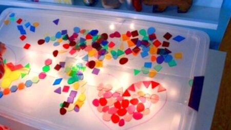 Предлагаю сделать своими руками световой стол (планшет) для рисования песком и прочих творческих занятий с ребенком. Занятия на световом столе развивают: Необходимые материалы: Застелите внутреннюю часть контейнера фольгой блестящей стороной вверх и закрепите скотчем. Фольга нужна для отражения и усиления света (можно обойтись и без нее). Наклейте кальку на внутреннюю сторону крышки. Она будет рассеивать свет. Положите ёлочную гирлянду или фонарь в пластиковую коробку и закройте крышкой. Если провод...