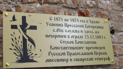 Его жизнь и деятельность были тесно связаны с Иркутской губернией и Забайкальским краем, откуда он вынужден был вернуться в Оек. Памятную доску одному из знаменитых миссионеров Сибири, известному этнографу и ученому-языковеду протоиерею Константину Стукову открыли в Свято-Успенском храме села Оёк. Константин Стуков родился в 1809 году. Окончил Иркутскую духовную семинарию, а затем был назначен учителем в иркутском приходском училище. С 1831 года – священник Иркутской Воскресенской церкви. С 1832 года – смотритель Нерчинского духовного училища, учитель древних языков...