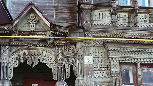 Городская усадьба Анастасии Козловой не так распиарена, как Летний клуб Дворянского собрания, к ней не водят экскурсии, она в стороне от протоптанных туристических троп и её пока нет в путеводителях. Но смотрите, как хороша! Дом сильно выделяется на фоне соседних многоэтажек. Его построили в 1893 году для содержательницы кружевных мастерских Анастасии Козловой. Возможно, поэтому в резных узорах читаются мотивы народной вышивки и хитросплетение кружева. Все элементы этой искусной резьбы имеют сакральный...