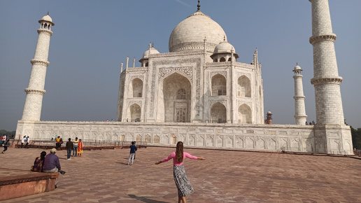 На второй день пребывания в Агре мы отправились в Тадж-Махал!Очень давно хотелось побывать тут и увидеть это индийское сокровище своими глазами! В комплекс можно попасть через одни из ворот,везде при входе будет досмотр!С большими рюкзаками и сумками проходить нельзя.У них есть камера хранения и вещи можно оставить там. Входные ворота в Тадж Махал! Проходим в них и сразу видим белоснежный мавзолей!Красота! Мавзолей,он же мечеть был построен по приказу потомка Тамерлана,падишаха империи Великих Моголов-Шах -Джахана ,в память о жене Мумтаз-Махал,умершей при родах 14- го ребёнка...