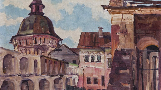 Летний этюд с внутренним двором Троице-Сергиевой лавры с видом на водяную башню в 1930-е годы. Предполагаю в правом углу руины гульбища Трапезного храма. Этот этюд хороший документ состояния не парадной части лавры. А её обратите внимания на цвета, даже сложно представить, что это когда-то были белые стены. Спасибо огромное автору за не популярный ракурс и цвет. Дмитрий Михайлович Тархов (1893-1948) — живописец и график. Окончил Строгановское центральное художественно-промышленное училище в 1915 году...