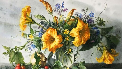 Хотите увидеть акварели, русские по духу и с русским чувством юмора? Да не какие-нибудь жанровые сценки, а натюрморты? Что, думаете, в натюрморте невозможно чувство юмора? А вот и ошибаетесь! Усаживайтесь поудобнее и открывайте эту книгу. Вернее, статью. Когда делала подборку для статьи о яблоках, мое внимание привлекла акварель Елены Базановой – яблоки в корзинке на фоне старой деревянной скамейки. Понравилось все: и манера исполнения, и композиция, и палитра, где нежно-зеленый оттенок яблок смягчался шелковым шарфом, по цвету подобным звездному небу...