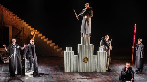 «Борис Годунов» (2015) Национальный драматический театр Литвы Режиссёр: Эймунтас Някрошюс В ролях: Сальвиус Трепулис, Мариус Репсис, Повилас Будрис В мире, придуманном Някрошюсом, совсем нет жизни. Темно, краски сгущены. Есть только удушающая тоска, от которой невозможно избавиться. Дышать в этом мире слишком тяжело. Сцена оформлена лаконично. Центром композиции режиссёр сделал лестницу, идущую вверх. На протяжении всего спектакля метафоричная конструкция...