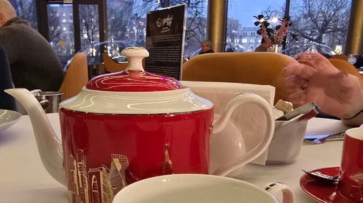 25 декабря 2025 года Здравствуйте, друзья! Вчерашний день, начавшийся среди сказок (в конце ссылка на статью о том, как это было), продолжился в парке "Зарядье", где в ресторане "Восход", предварительно забронировав столик, можно было заказать "Московское чаепитие". О том, что такой формат существует я что-то слышала, но толком не представляла, что же там такого к чаю подают. Вот и посмотрим! Но сначала мы той же дружной командой из трёх человек доехали от Делового центра до Александровского сада и пошли мимо Кремля и Красной площади с катком и ярмаркой в парк "Зарядье"...