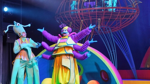 Этот спектакль художественный руководитель «Буффа» Михаил Смирнов поставил по мотивам «Путешествия Алисы» и других книг Кира Булычева. А также под впечатлением от советского мультфильма. Это видно не столько по тому, что часть костюмов деликатно отсылает к тем, нарисованным сорок пять лет назад, персонажам, сколько по тому, что вся сценография в целом (художник-постановщик — Яна Штокбант) решена в мультяшном духе. Только это уже другая, современная картинка — и по краскам, и по формам. Задействована почти вся возможная театральная машинерия...