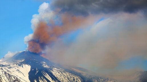 Действующий вулкан Этна - самая большая природная достопримечательность Сицилии. Особенно он хорош зимой в снежной шапке. И каждый раз разный - то он легонько дымится, то начинает сильно сердиться, извергая огромные клубы дыма с огнём, при этом издавая грохот на всю округу. Я покажу Вам Этну и с разных сторон, и на рассвете, и на закате. Удалось полетать над Этной на вертолёте. По моей просьбе пилот снял дверь с вертолёта и поэтому полёт получился просто захватывающий дух. Об этом можно прочитать в статье, ссылку на которую дам в конце этого рассказа...