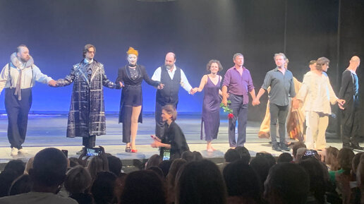 Казалось бы, настолько заезженная тема, что уже ничего нового мы не увидим. Доллары на зрителей раскидывали, черной магией пугали, осетриной второй свежести в буфете угощали. А раз ничего нового не увидим - так ничего нового и не напишем. Именно с такими мыслями я шла на этот спектакль, тем более, поклонницей творчества Булгакова я не являюсь и Маргарита - совсем не моя ролевая модель. НО! Билеты куплены, волосы уложены, каблуки надеты - выбора нет! Сам спектакль начинается с выхода на сцену славной троицы, из которых явно узнаваем Коровьев...