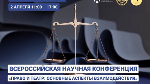 » ⚡️ Юридический факультет ГАУГН приглашает преподавателей вузов, научных работников, аспирантов и практикующих специалистов принять участие во Всероссийской научной конференции «Право и театр: основные аспекты взаимодействия». 💬 Опираясь на исторические и современные примеры, участники обсудят, как театр драматизирует правовые темы, как драматургия влияет на юридическую практику и как перформативные аспекты права воздействуют на общественное участие и культурное понимание правосудия...