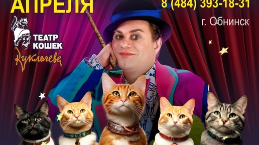 🐱Единственный в мире театр кошек и Юрий Куклачёв представляет 5 апреля в 12:00 в Доме учёных спектакль Владимира Куклачева «Волшебные кошки». Владимир младший сын Юрия Куклачёва. В начале своего творческого пути получив хореографическое образование, работал танцором. Затем, не захотев расставаться...