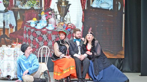 Парадигма культурного работника в том, что он обязан служить искусству и создавать праздник для окружающих, коллектив Концертно-театрального объединения Кумертау не отошёл от неё и на этот раз: артисты подарили и себе, и горожанам прекрасный подарок – комедийный спектакль «За двумя зайцами». Вкратце, это история молодого цирюльника Свирида Петровича Голохвастого, который пытается поправить свои финансовые дела, женившись на богатой мещанке Проне Прокоповне Серко, и одновременно ухаживает за бедной красавицей Галей...