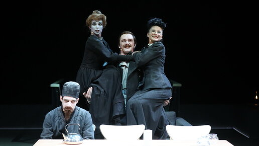 Побывала я в нашем замечательном ТЮЗе на "Мещанах" М.Горького. Очень любопытный спектакль, с интересными мизансценами. Может быть, расскажу об этом поподробнее. Но вот что меня смутило: артисты использовали микрофоны. На фотографиях это отчётливо видно: Но этот спектакль действительно поставлен необычно: публика сидит на специальной "трибуне", и на протяжении всего спектакля слышит различные звуки, доносящиеся со всех сторон. Можно сказать, у спектакля есть партитура :) При такой постановке усиление звука вполне логично...