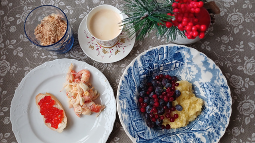 На январь я взяла сумму на питание в размере 70% от прожиточного минимума. На человека это 250 руб в день, в месяц - 7 739 руб. В первые дни января, как и вся страна, доедаем остатки с новогоднего стола. 🤗 Сварила пшенную кашу, в нее добавила голубику и бруснику Морской салат и бутерброды с икрой и на десерт - кофе с Киевским тортом в стаканах. У меня остались оба вида крема Шарлотт -шоколадный и обычный, обрезки от коржей. И я в стаканах собрала что-то типа трайфла, но с "Киевскими" коржами Напомню, что я стараюсь вообще никогда и ничего не выбрасывать...