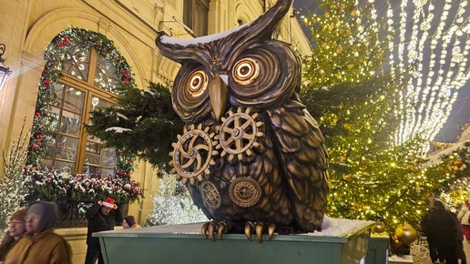 Сейчас я покажу вам московские улицы и гуляющих на них людей, которые не были отягощены необходимостью нарезания салатов, а также приготовления прочей снеди для новогоднего стола. Они просто гуляли по центру Москвы и наслаждались роскошными видами украшенной столицы. Первый отрезок нашего маршрут пройдёт по Чистопрудному бульвару. Начнём мы его с площади Покровских ворот. Затем по Чистопрудному бульвару мы пойдём до площади Мясницких ворот. Цвет освещения бульвара периодически меняется. Катка на пруду нет...