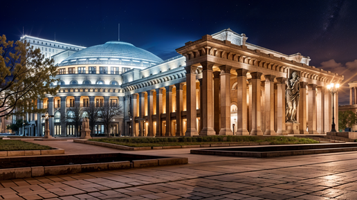 НОВОСИБИРСК 4К/ПОДСВЕТКА ЗДАНИЯ ОПЕРНОГО ТЕАТРА В ВЕЧЕРНЕЕ ВРЕМЯ МЕРЦАЕТ ЗЕЛЕНЫМ СВЕТОМ