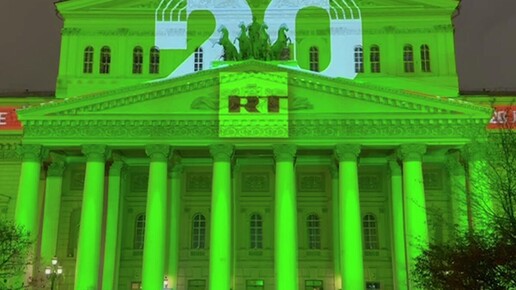 Большой театр окрасился в зеленые тона в честь юбилея RT