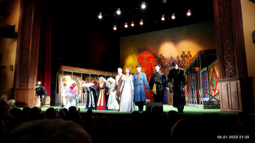 В новогодние дни, а конкретно – 6 января 2023 года – я смогла побывать на спектакле «Ханума» знаменитого ярославского Театра драмы им. Ф. Волкова. Этот музыкальный спектакль я помню в постановке режиссера Георгия Товстоногова в 70-х гг. прошлого века на сцене Ленинградского БДТ. Помню хорошо великолепную игру актеров, смешные реплики, музыку, песни. В новогодние дни захотелось веселого, праздничного. И Театр Волкова – красивый и снаружи, и внутри. Вечером театр так выглядит нарядно, с красивой подсветкой, что хочется зайти...
