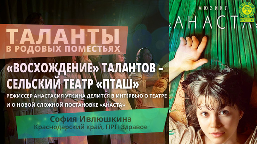 «ВОСХОЖДЕНИЕ» ТАЛАНТОВ – СЕЛЬСКИЙ ТЕАТР «ПТАШ». РЕЖИССЕР АНАСТАСИЯ УТКИНА ДЕЛИТСЯ В ИНТЕРВЬЮ О ТЕАТРЕ И О НОВОЙ СЛОЖНОЙ ПОСТАНОВКЕ «АНАСТА»