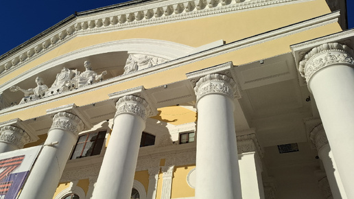 Всем большой привет.Друзья, если вы окажетесь в нашем замечательном городе, рекомендую посетить наш драматический театр. Поверьте, он не оставит вас равнодушными. Вы ощутите всю театральную атмосферу в полной мере, начиная от входа и до выхода. Каждый раз после просмотра спектакля мне совершенно не хочется покидать здание театра. Я медленно спускаюсь по красивейший мраморной лестнице. Никуда не тороплюсь) , делаю фото) Лестница покрыта ковровой дорожкой. Вот такая великолепная Лестница. А по бокам красивейшие колонны...