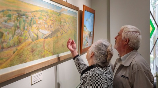 Выставка «Город на Иртыше» открылась в Музее Природы и Человека. На ней представлены картины Тебетева, на которых запечатлен Ханты-Мансийск.