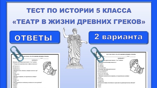 Готовый проверочный тест по истории Древней Греции для 5 класса по теме «Театр в жизни древних греков», составленный по требованиям ФГОС и учебнику В. Р. Мединского, А. О. Чубарьяна «История Древнего мира». Материал идеально подходит для учителей, школьников и родителей. Ключевые особенности теста: Соответствие УМК: Разработан специально для учебника «История Древнего мира» 5 класс под ред. В. Р. Мединского и А. О. Чубарьяна. Структурированное содержание: Полностью охватывает программу по темам «Рождение театра», «Древнегреческая трагедия», «Древнегреческая комедия»...