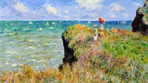 Глядя на пейзажи Клода Моне ощущение жары, морского бриза, захватывает тебя невероятным образом. Так и хочется, глядя на "Прогулка по скалам в Пурвиле", окунуться в прохладное и соленое море. Постоять на мысе, пока тебя обдувает теплый, летний ветер. Импрессионисты были первопроходцами в изображении света, воздуха и температуры. Картина переносит тебя в теплоту, летний жаркий день. Яркое солнце просто слепит глаза со стороны холста. Это достигается с помощью теплых и насыщенных цветов краски. Клод Моне не любил пасмурную погоду...