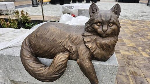 Тёплый сентябрь, бронзовая скульптура с изображением кота, а также немного товаров с котиками из Магнит косметик