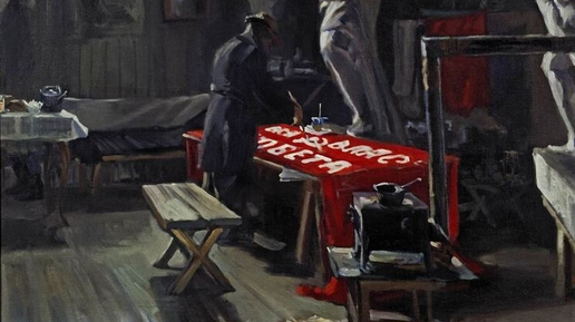 18 декабря исполняется 135 лет со дня рождения Николая Терпсихорова (1890—1960). Он был из той плеяды художников, которые сразу приняли революцию. Заглавная картина — «Первый лозунг» — считается автобиографичной. Мастерская в холодной мансарде (видимо, нет дров), нетопленой стоит печка-«буржуйка». А художник сосредоточенно склонился над своей работой, выписывая кистью на кумаче слова революционного лозунга: «Вся власть Советам!».