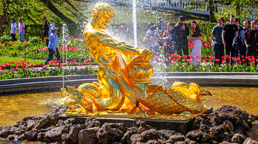 Весенняя симфония Петергофа – фонтаны и тюльпаны
