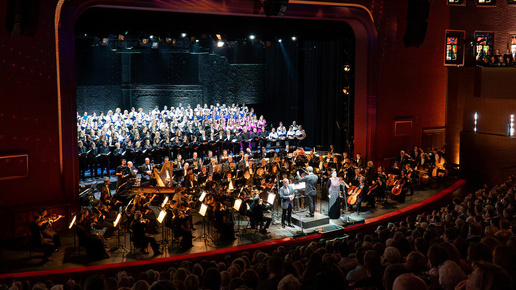 В этом году с размахом, подобающим фигуре юбиляра, отпраздновали 110-летие Георгия Свиридова, композитора, под чью музыку вся страна долгие годы по вечерам собиралась у телевизора за просмотром вечерних новостей. В «Геликон-опере» присоединились к масштабному празднованию и 16 декабря закатили грандиозный праздник с участием 420 хоровых артистов на одной сцене одновременно. Зная зал «Стравинский» в «Геликоне», с трудом верилось, что там могут разместиться одновременно оркестр и несколько хоровых коллективов в составе 420 артистов...