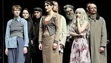Режиссер - Саша Золотовицкий Начать быть Спектакль про мечтающих сестер поставлен как трагифарс, в котором режиссер деконструирует миф о великом и прекрасном прошлом. Художник Маша Левина возвела фасад дворянского особняка. Он давно в лесах, в рваной строительной сетке, ведется реставрация — намек на сегодняшнее активное реанимирование мифа. Действие происходит в настоящем, на строительной площадке перед домом. Режиссер сохранил всех основных персонажей, все перипетии, но ввел вставные эпизоды и добавил персонажам текст...