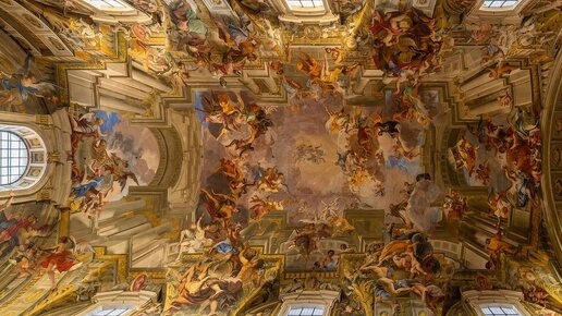 Слово «тромплей» по-французски звучит романтично, хотя это переводится всего лишь как обман глаза. Обманка. Очень частый прием в живописи и архитектуре. Видели много раз: когда у стен здания вроде колонны, а присмотреться – они искусно выписаны. То же самое с барельефами и куполами. Особо тромплей расцвел в пору барокко. Тут знаменитый пример из римской церкви Сант-Иняцио, который создал Андреа Поццо. Кажется, будто потолок уходит в небесную бесконечность. И действительно, трудно понять, где стены переходят уже в горизонтальную плоскость...
