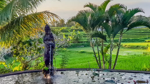 Пройдя Тропу Художников до конца, сначала попадаем в небольшую деревенку с храмом и плотно стоящими домами вдоль единственной улицы. Дальше улица переходит в дорогу и петляет между рисовыми полями и стоящими на них виллами. В некоторых живут местные жители, а некоторые виллы сдаются в аренду. Также здесь расположены небольшие гостиницы и homestay (гостевые дома, где можете снять комнату и пожить среди местных жителей). Прогулявшись вдоль рисовых полей, можно остановиться выпить смузи или поесть в Карса-кафе, из которого открывается замечательный вид на пруд с лотосами и рисовые поля...