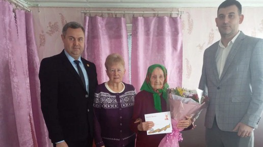 С юбилеем долгожительницу поздравили представители районной и поселенческой администрации В Красновском поселении жительница хутора Михайловка Клавдия Александровна Плаксиенко отметила 100-летний юбилей. Поздравить долгожительницу с вековым рубежом прибыли представители местной власти. Заместитель главы администрации Каменского района Денис Ерошев и глава администрации Красновского поселения Павел Газенко вручили юбилярше именные поздравления от президента России Владимира Путина и губернатора Ростовской области Юрия Слюсаря, а также цветы и ценные подарки...