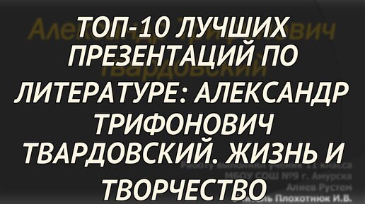 ТОП-10 лучших презентаций по литературе: Александр Трифонович Твардовский - жизнь и творчество