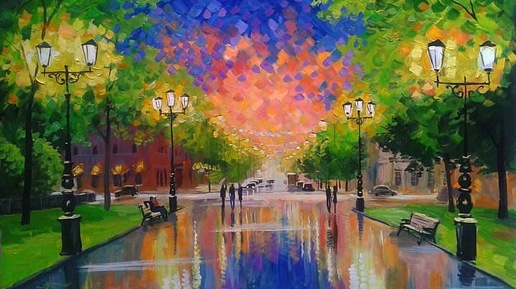 Красивая живописная романтика дождя в творчестве художника Александра Болотова.